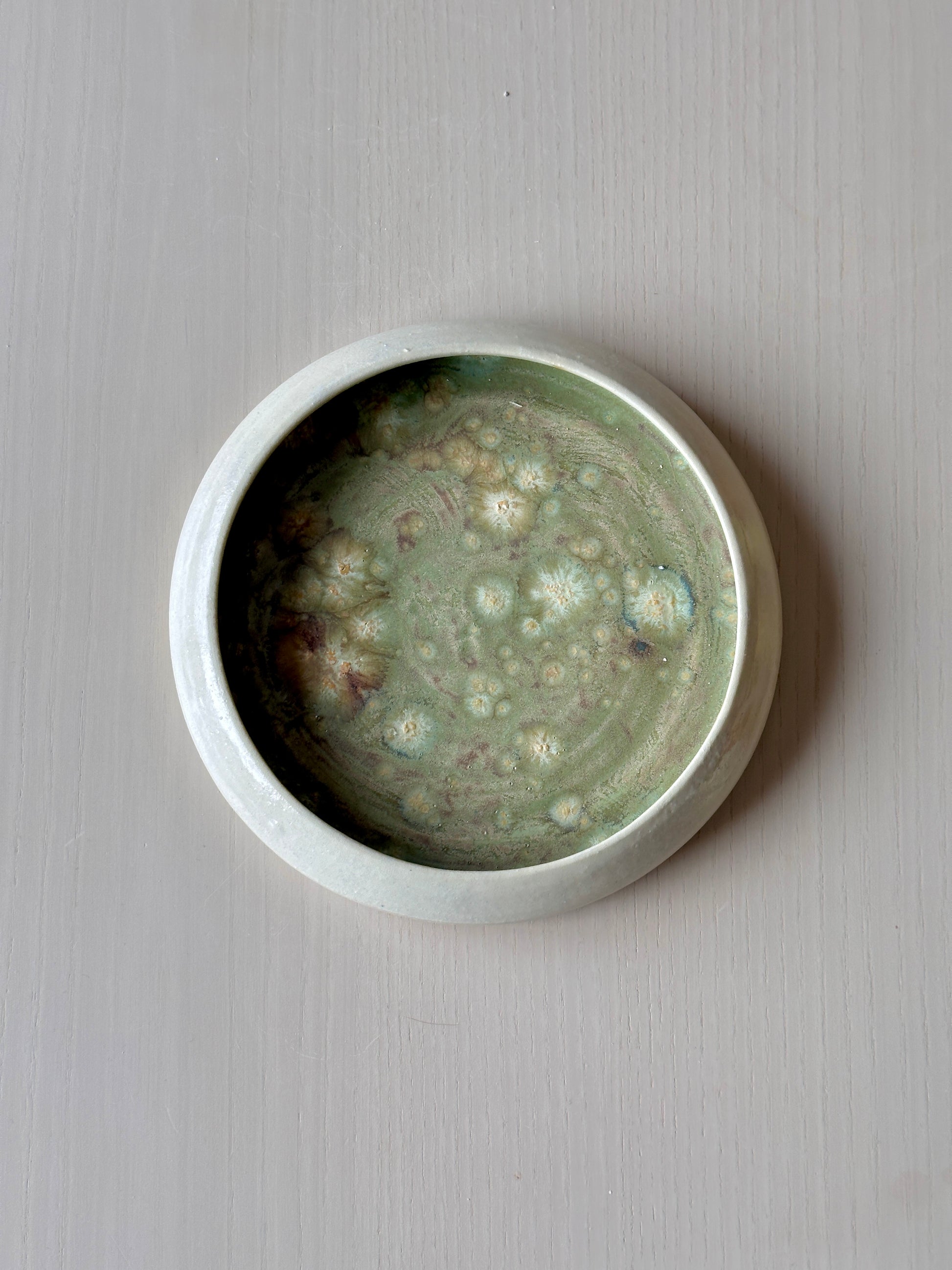 plate with lichen glaze treatment